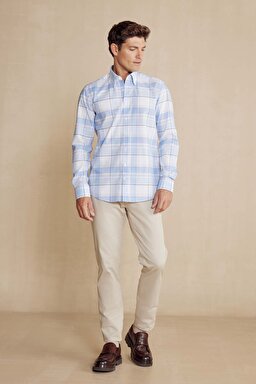 %100 Pamuk Slim Fit Klasik Yaka Desenli Gömlek