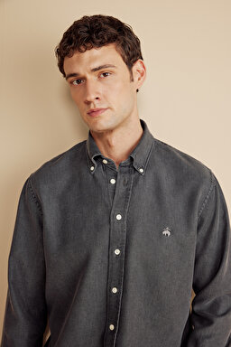 Düğmeli Yaka Regular Fit Denim Gömlek