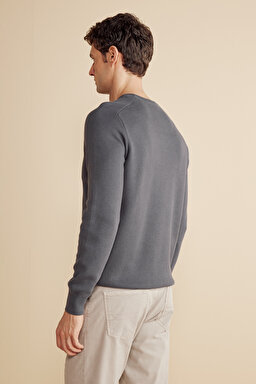 %100 Pamuk Bisiklet Yaka Pike Örgü Çekiç Kol Kazak
