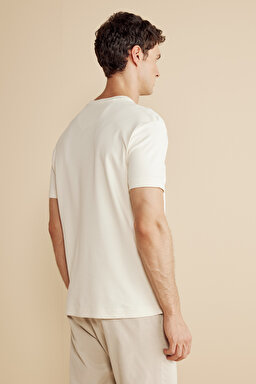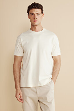 %100 Pamuk Bisiklet Yaka Kolu Patch Logolu Tişört