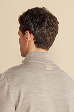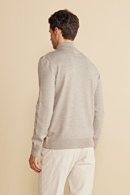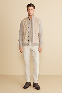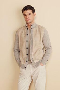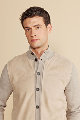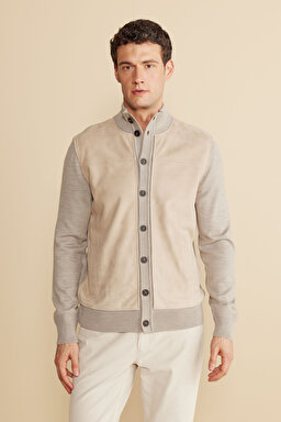Dik Yaka Düğmeli Önü Süet Triko Mont