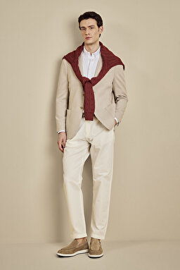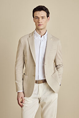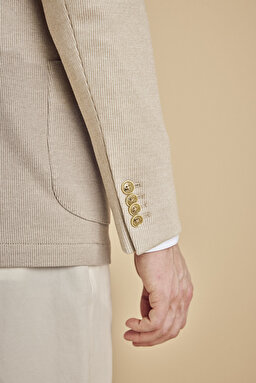 Pamuk Karışımlı Mono Yaka Torba Cep Regular Fit Çizgili Örme Ceket