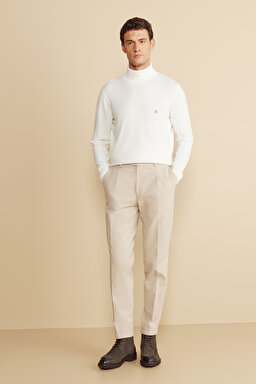 Pamuk Karışımlı Uzun Dilli Duble Paça Chino Pantolon