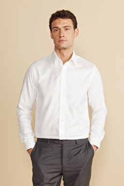 %100 Pamuk Balıksırtı Slim Fit Klasik Yaka Gömlek