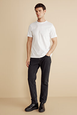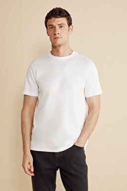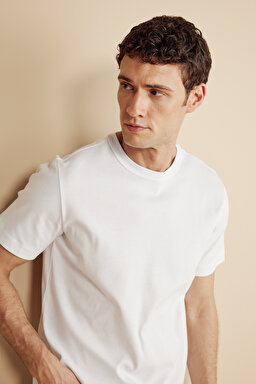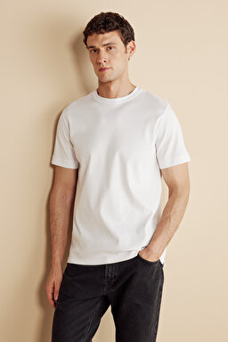 %100 Pamuk Bisiklet Yaka Kısa Kol Mercerize Rib Tişört