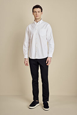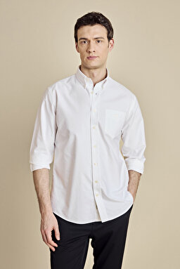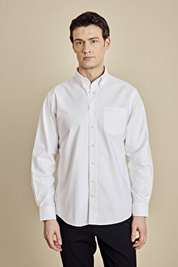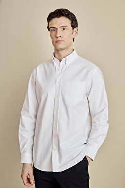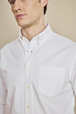 %100 Pamuk Düğmeli Yaka Regular Fit Cepli Oxford Gömlek
