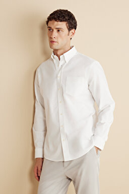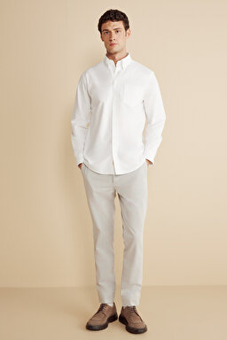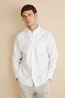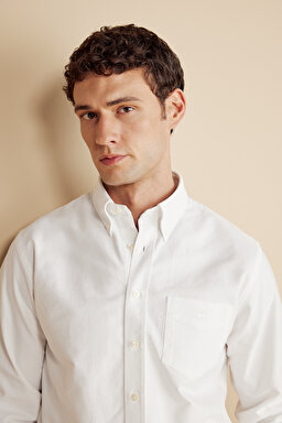 %100 Pamuk Düğmeli Yaka Regular Fit Uzun Kol Cepli Oxford Gömlek