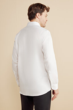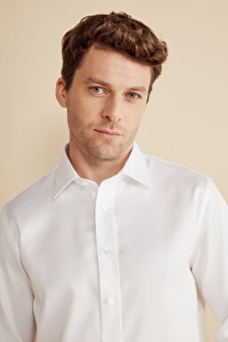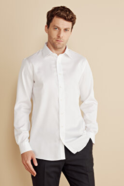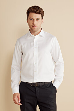 %100 Pamuk Klasik Yaka Slim Fit Armürlü Non Iron Gömlek