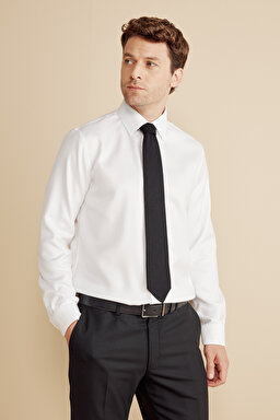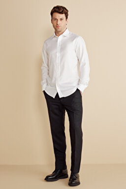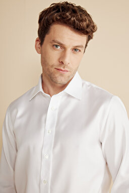 %100 Pamuk Klasik Yaka Slim Fit Diagonal Non Iron Gömlek