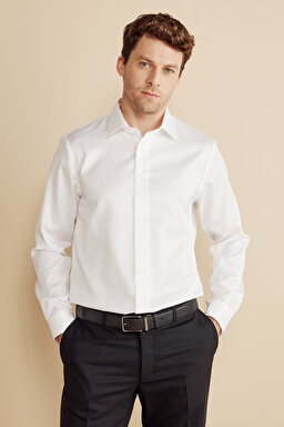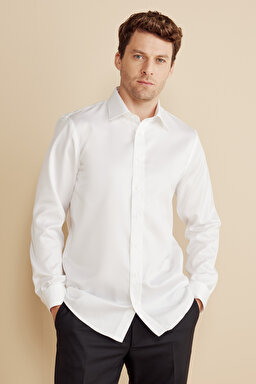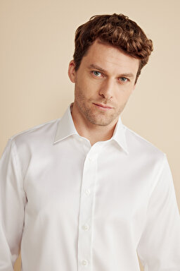 %100 Pamuk Klasik Yaka Slim Fit Gabardin Doku Non Iron Gömlek