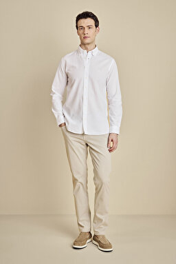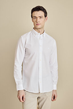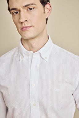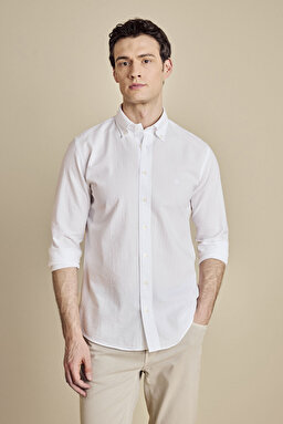 Düğmeli Yaka Slim Fit Gofre Gömlek