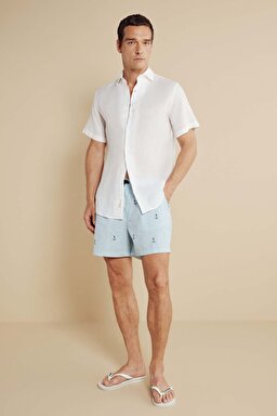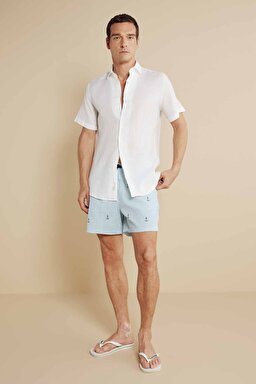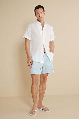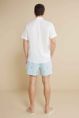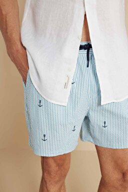 Lastikli Çizgili Çapa Nakışlı Deniz Şortu