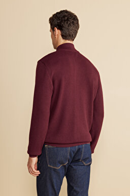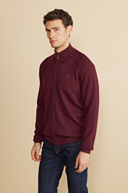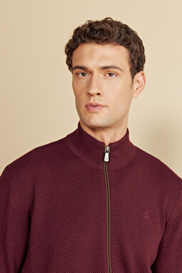 Dik Yaka Petek Örgü Kontrast Biyeli Yün Hırka
