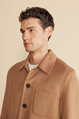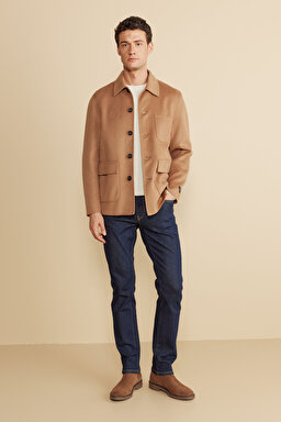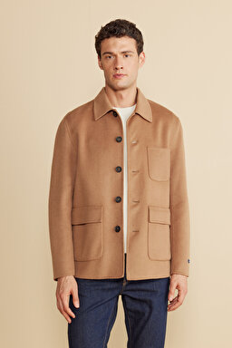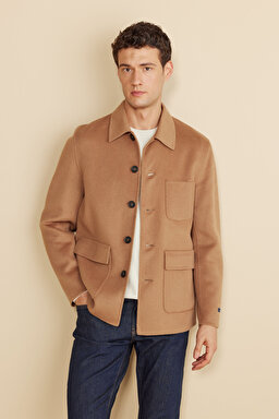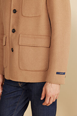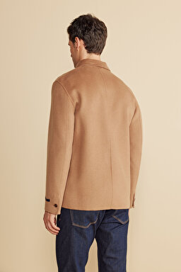Klasik Yaka Cepli Yün Kaşmir Karışımlı El Yapımı Dikişsiz Ceket