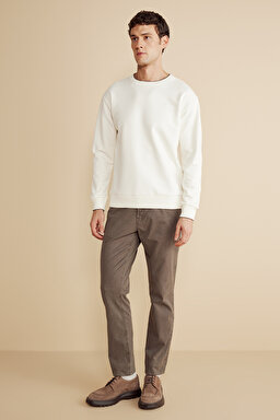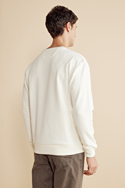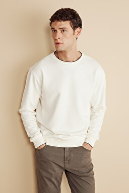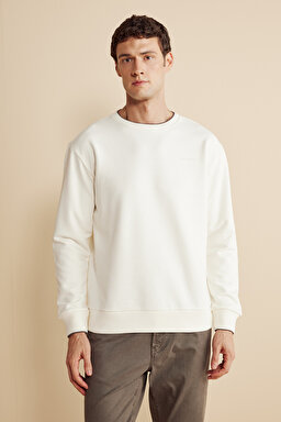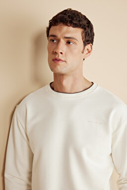 Pamuk Karışımlı Bisiklet Yaka ve Kol Ucu Çizgi Detaylı Sweatshirt