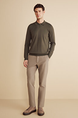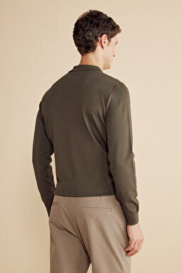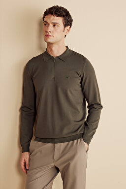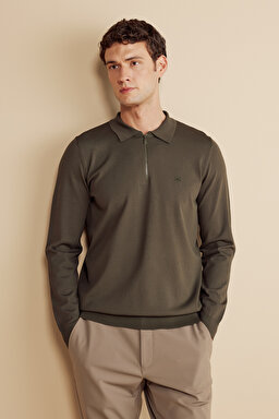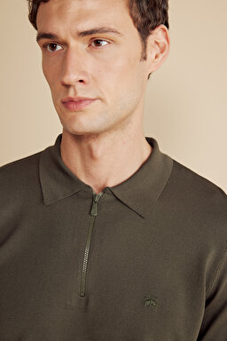 Polo Yaka Fermuarlı Uzun Kollu Rayon Kazak
