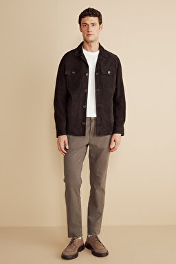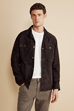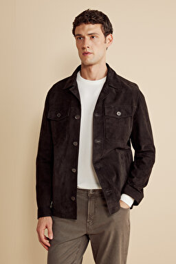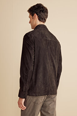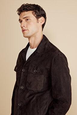 Klasik Yaka Cep Detaylı Safari Süet Ceket