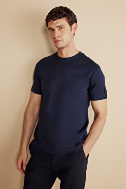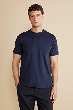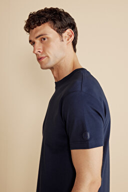 %100 Pamuk Bisiklet Yaka Kolu Patch Logolu Tişört