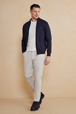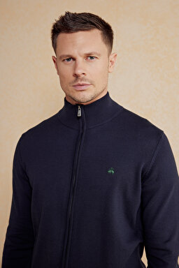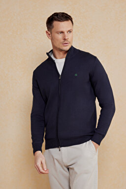 %100 Pamuk Dik Yaka Fermuarlı Basic Hırka