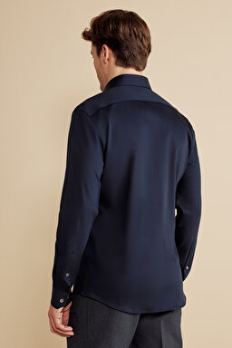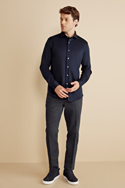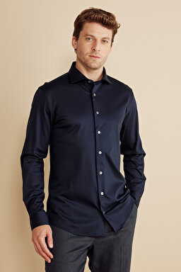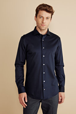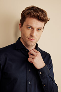 %100 Pamuk İtalyan Yaka Slim Fit Örme Gömlek