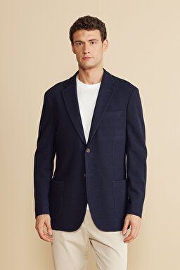 %100 Yün Mono Yaka Torba Cep Regular Fit Örme Ceket