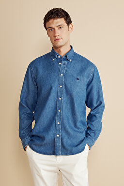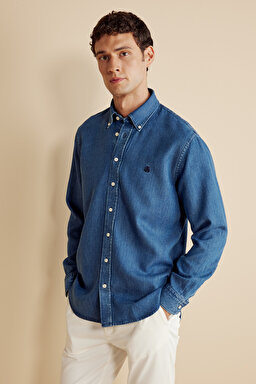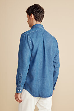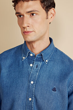 Düğmeli Yaka Regular Fit Denim Gömlek