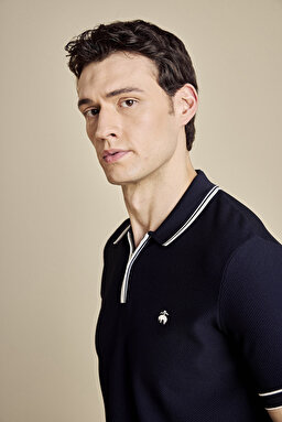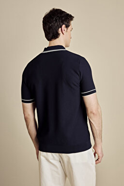 Polo Yaka Fermuarlı Petek Örgü Rayon Kısa Kol Kazak