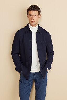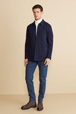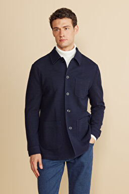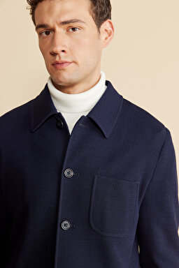 Klasik Yaka Torba Cep 100% Yün Örme Overceket