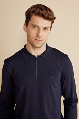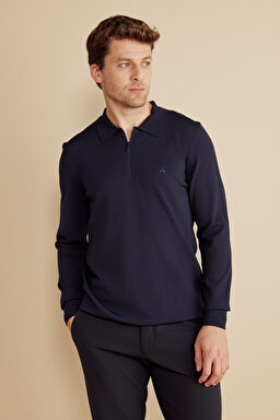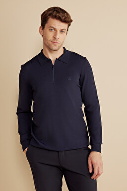 Polo Yaka Fermuarlı Uzun Kollu Rayon Kazak