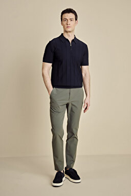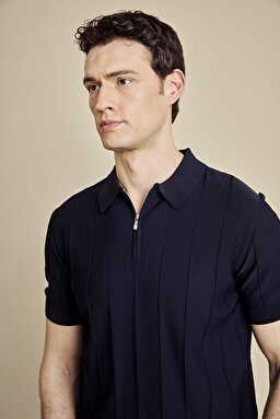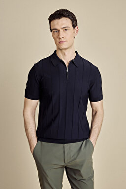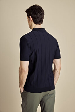 Polo Yaka Nervürlü Rayon Kısa Kol Kazak
