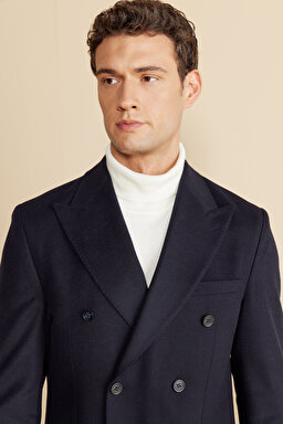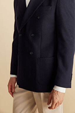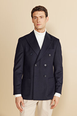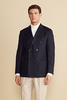 Sivri Yaka Kruvaze Torba Cep Slim Fit Kaşmir Yün Karışımlı Ceket