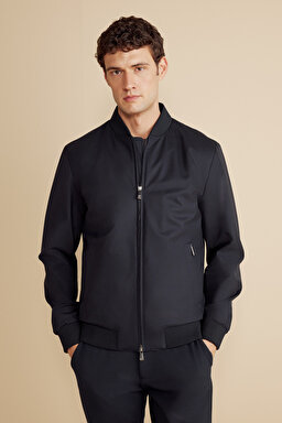 Yün Karışımlı Kolej Yaka Bomber Mont