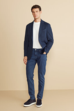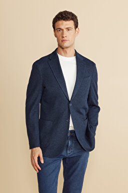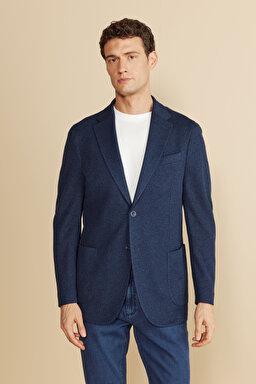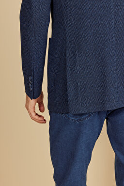 Yün Karışımlı Mono Yaka Torba Cep Regular Fit Balıksırtı Örme Ceket