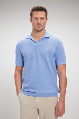 %100 Pamuk Düğmeli Polo Yaka Kısa Kollu Kazak