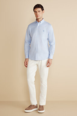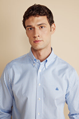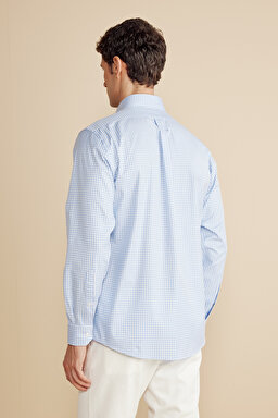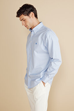 %100 Pamuk Düğmeli Yaka Regular Fit Uzun Kol Kareli Gömlek