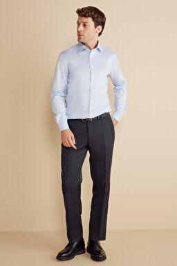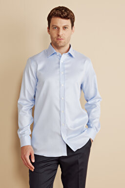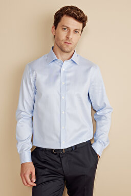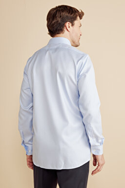 %100 Pamuk Klasik Yaka Slim Fit Çizgili Non Iron Gömlek