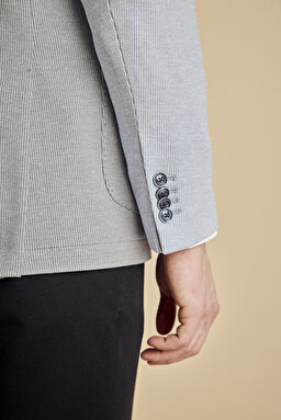 Pamuk Karışımlı Mono Yaka Torba Cep Regular Fit Çizgili Örme Ceket