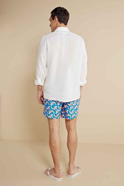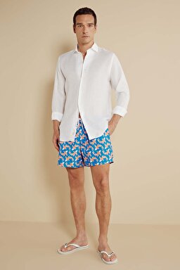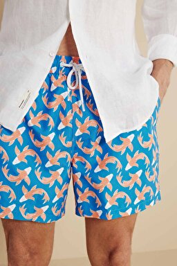 Lastikli Japon Balığı Desenli Deniz Şortu