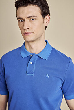 %100 Pamuk Polo Yaka Parça Boya 2 Düğmeli T-shirt
