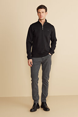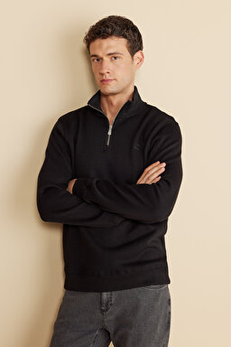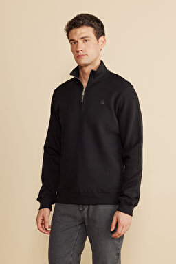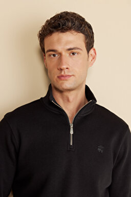 %100 Pamuk Bato Yaka Kuzu Peçli Sweatshirt