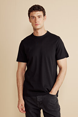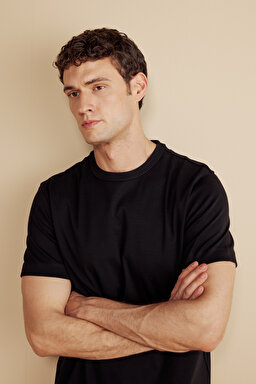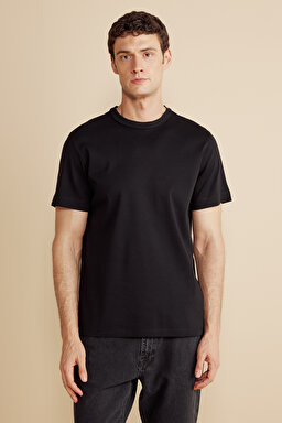%100 Pamuk Bisiklet Yaka Kısa Kol Mercerize Rib Tişört