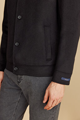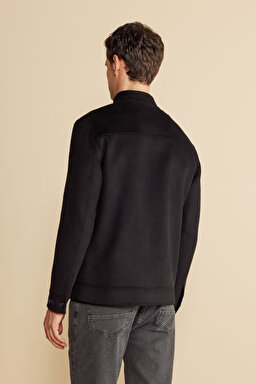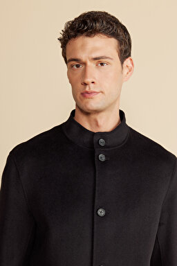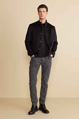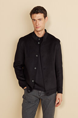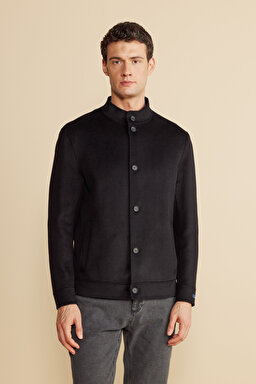 Dik Yaka Cepli Yün Kaşmir Karışımlı El Yapımı Dikişsiz Ceket
