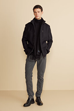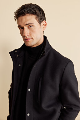 Dik Yaka Çıtçıtlı Kaşmir Karışımlı Kaban