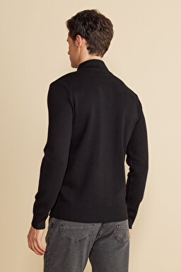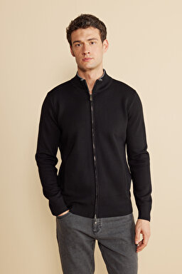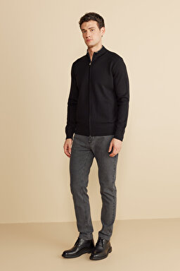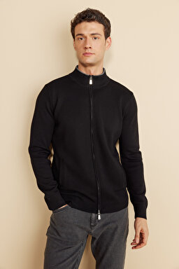 Dik Yaka Fermuarlı Cepli Merino Yün Hırka
