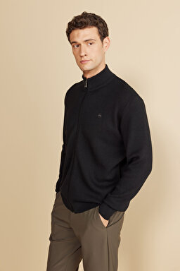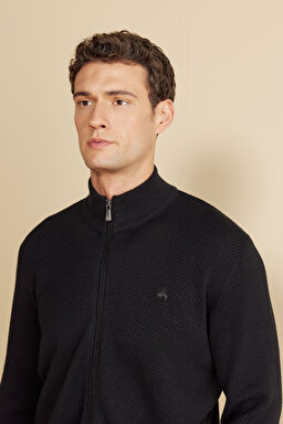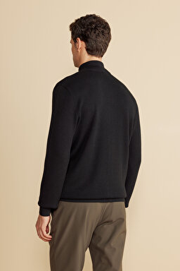 Dik Yaka Petek Örgü Kontrast Biyeli Yün Hırka