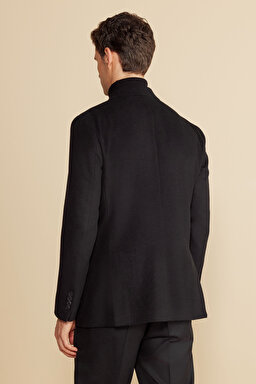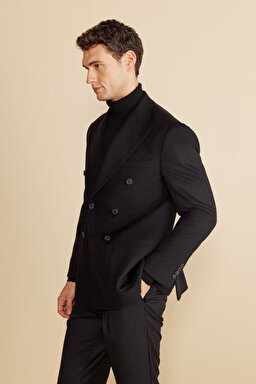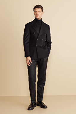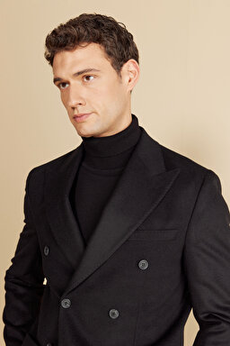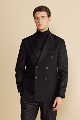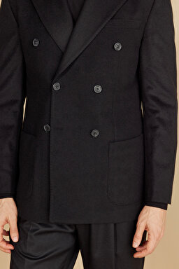 Sivri Yaka Kruvaze Torba Cep Slim Fit Kaşmir Yün Karışımlı Ceket