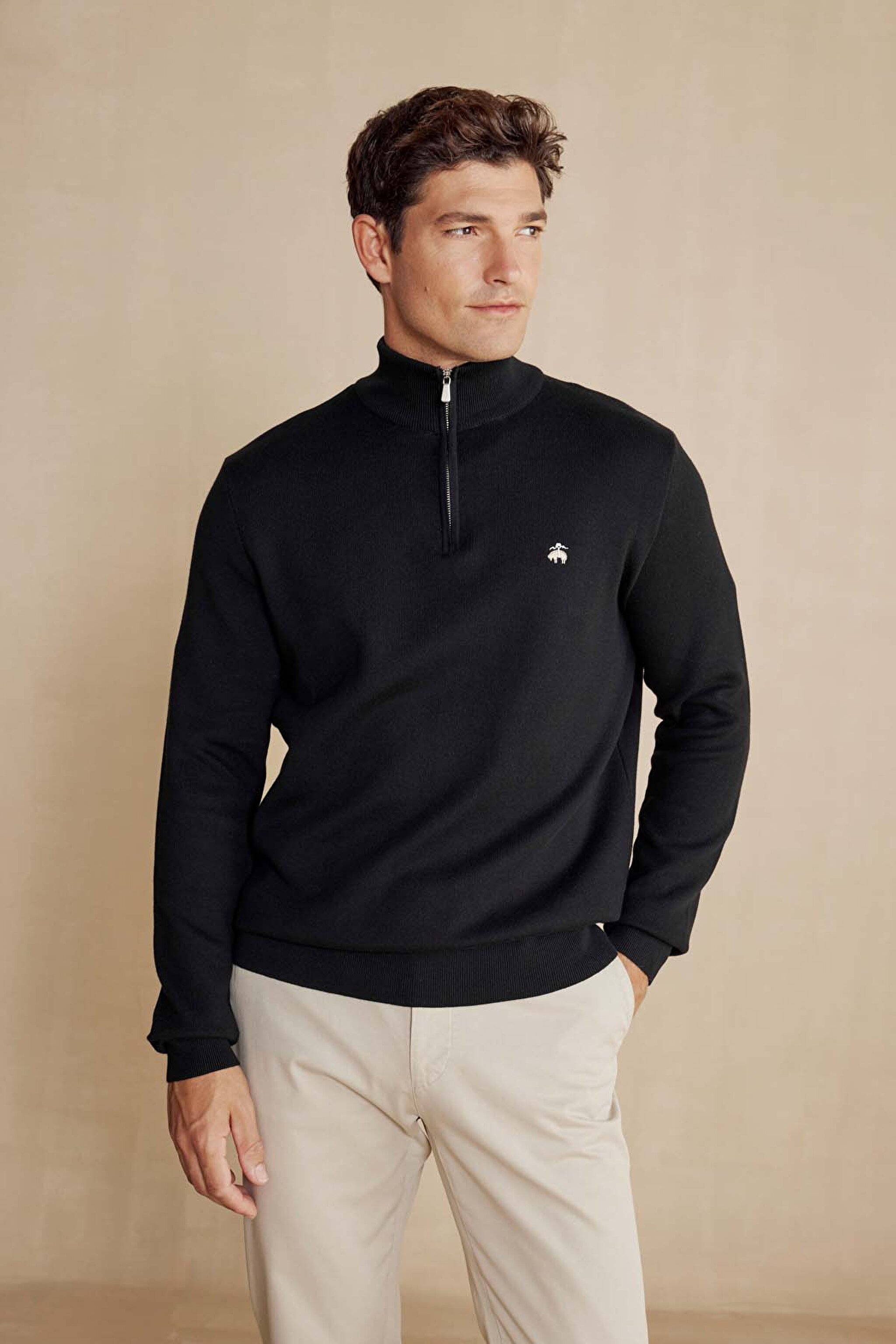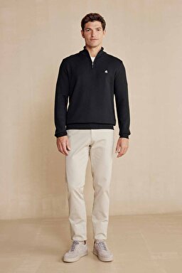 Standart Fit Normal Kesim %100 Pamuk Fermuarlı Yaka Triko Kazak