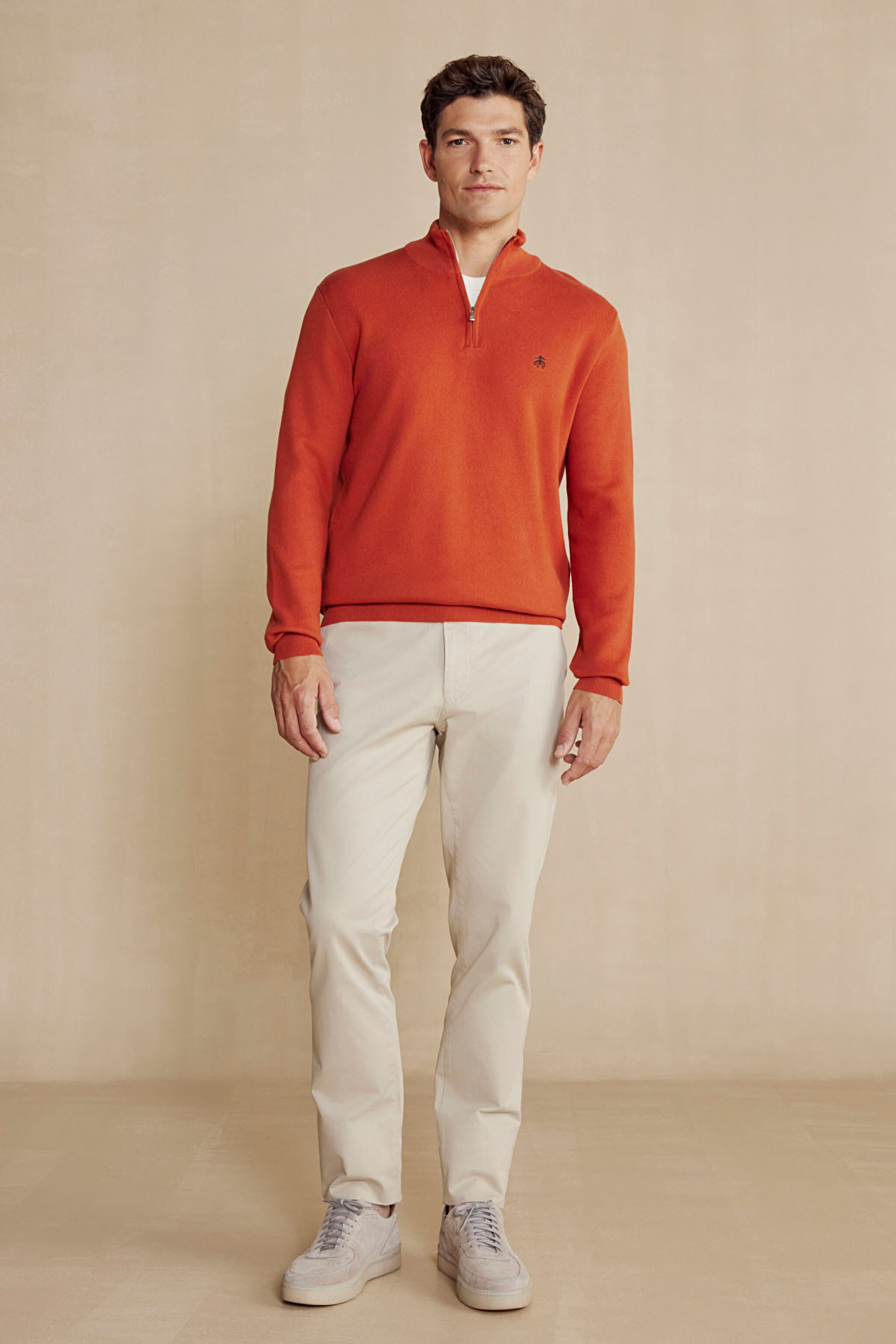 Standart Fit Normal Kesim %100 Pamuk Fermuarlı Yaka Triko Kazak