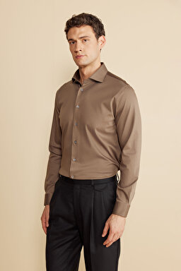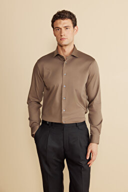 %100 Pamuk İtalyan Yaka Slim Fit Örme Gömlek