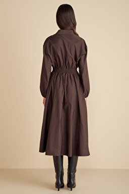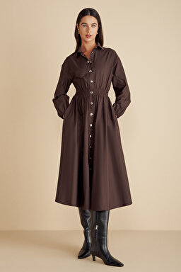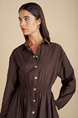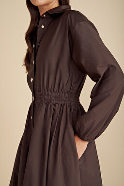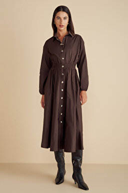 Metal Çıtçıtlı Tafta Midi Gömlek Elbise